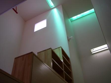 玄関ホールより吹き抜を見上げる